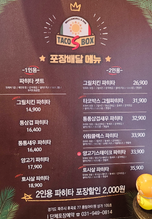 파주 배달 맛집 '타코박스 금촌점'에서