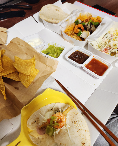 파히타를 포장해서 먹게 되었습니다!